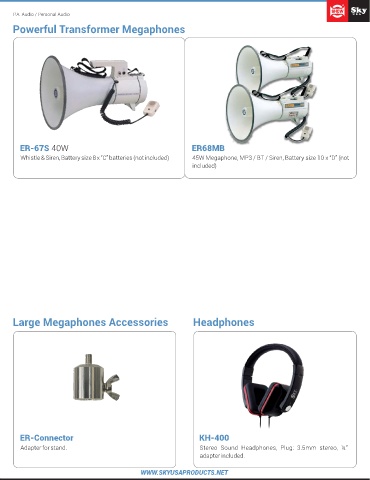 TD-60-VC 60W TD-100-VC 100W Whistle & Siren, Battery size 8 x ”C” batteries (not included) 45W Megaphone, MP3 / BT / Siren, Battery size 10 x “D” (not