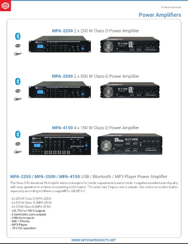 MPA-2250 / MPA-2500 / MPA-4150 USB / Bluetooth / MP3 Player Power Amplifier