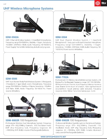 Professional 2 Ch Wireless Handheld Microphone System, SDM-8802R 100 frequencies SDM-9902R 100 frequencies