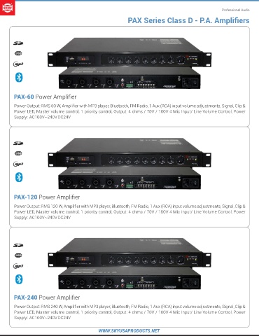 PAX Series Class D - P.A. Amplifiers Pro Audio Device