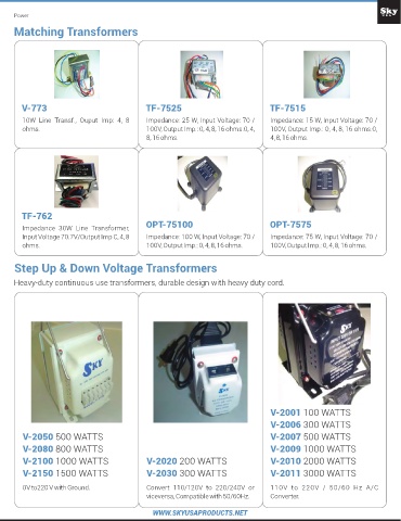 Product Specifications: ohms. 100V, Output Imp.: 0, 4, 8, 16 ohms.0, 4, 100V, Output Imp.: 0, 4, 8, 16 ohms.0,