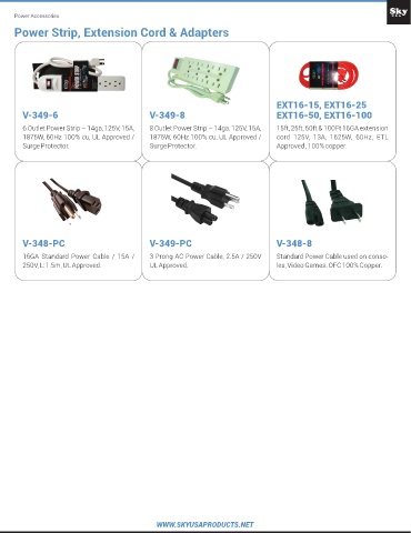 6 Outlet Power Strip – 14ga, 125V, 15A, 8 Outlet Power Strip – 14ga, 125V, 15A, 15ft, 25ft, 50ft & 100Ft 16GA extension